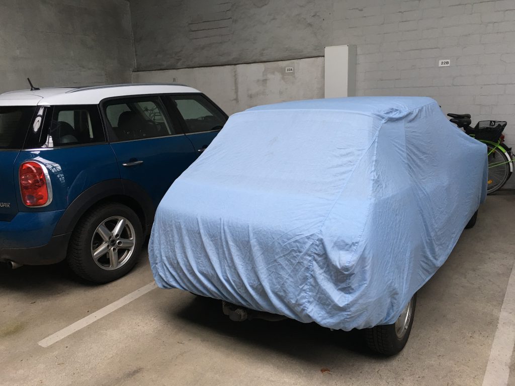 Schon seit langem habe ich für den Peugeot 205 eine Autoschutzdecke in dem Fall einen Autopyjama im Gebrauch. Dabei handelt es sich um die Variante „Extra Blau“ Größe XS diese habe ich damals für ca. 80€ gekauft (Preis 2017 106€) . Der Stoff ist angenehm leicht und weich und läßt sich durch den eingearbeiteten Gummizug einfach und schnell anlegen. Die Autoschutzdecke ist für den Innen Gebrauch gedacht und schütz das Auto zuverlässig vor Staub und kleinen Kratzern und ist außerdem atmungsaktiv sodaß kein Schimmel entstehen kann.