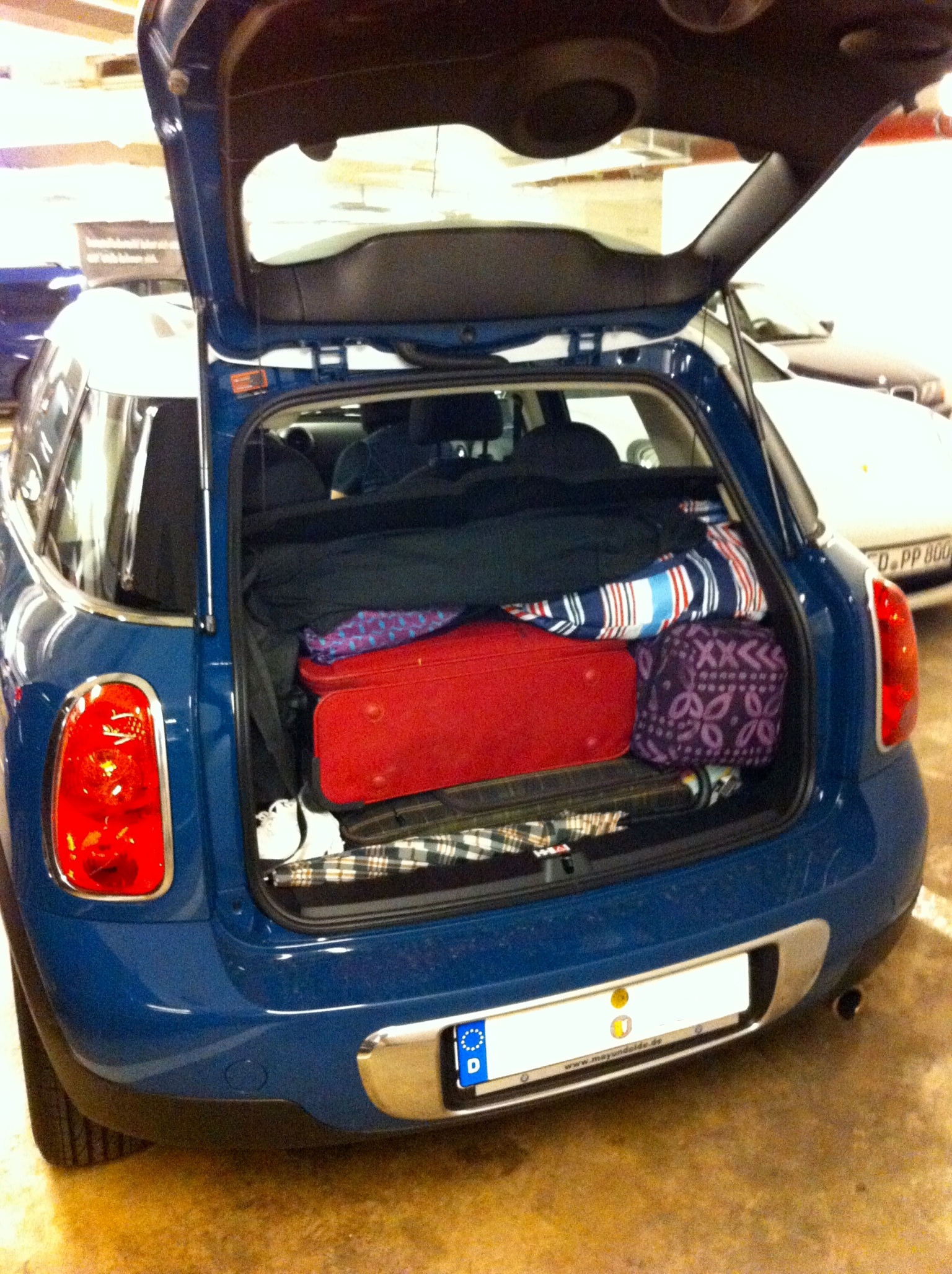 Als erstes musste der CM eine Packprobe bestehen, naja von den gehofften 4 Trollis passen dann wohl doch nur 2-3 in den Kofferraum (beim probepacken beim Händler waren die Trollis ja auch leer 😉