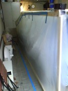 Seitenteile zusammen schrauben und die Folie antackern, ich hebe extra die Front angeschrägt damit der Raum möglichs klein ist, denn je kleiner der Raum ist umso schneller lässt sich die Raumluft trocknen.