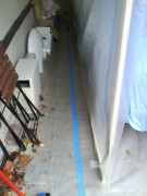 Boden mit Folie bedecken , dabei bedenken dass ca. 20 cm über die Seitenteilen herausschauen müssen damit die Folie später gut abgeklebt werden kann.