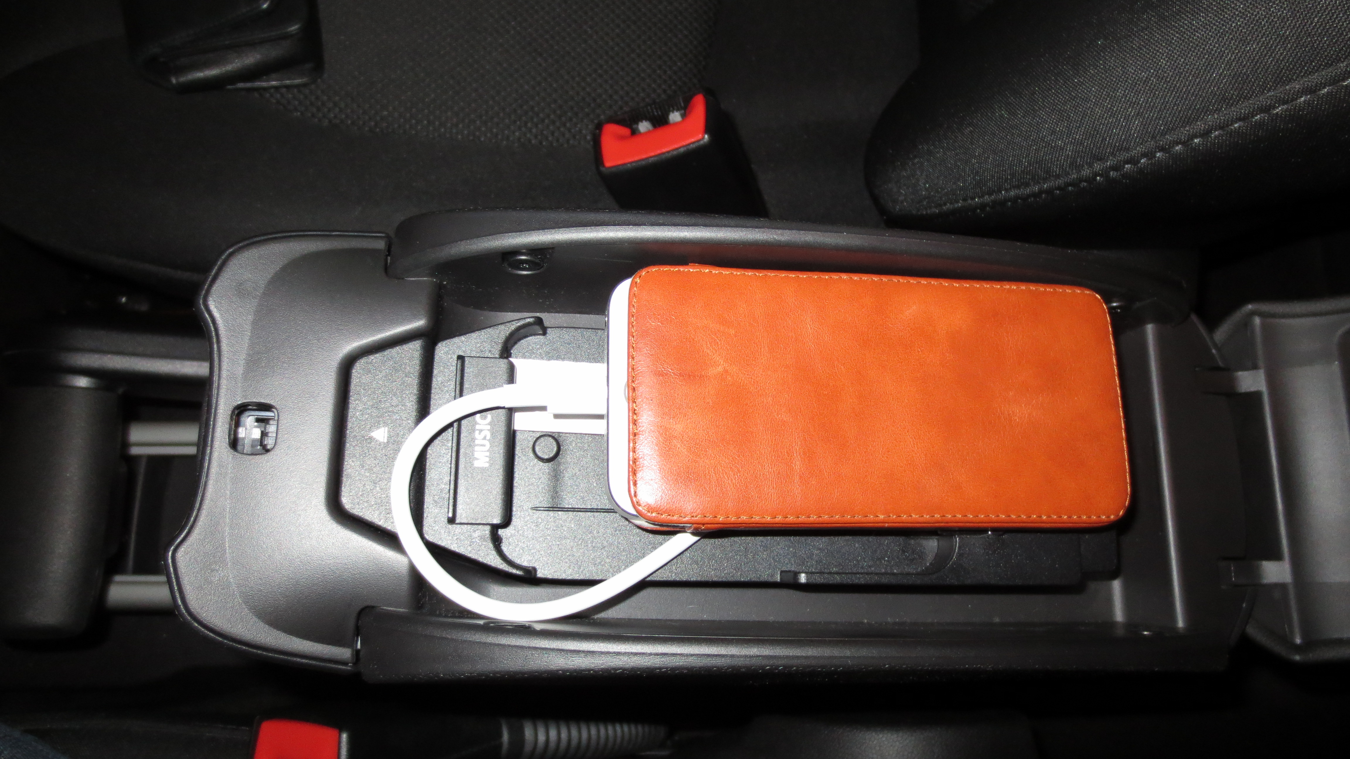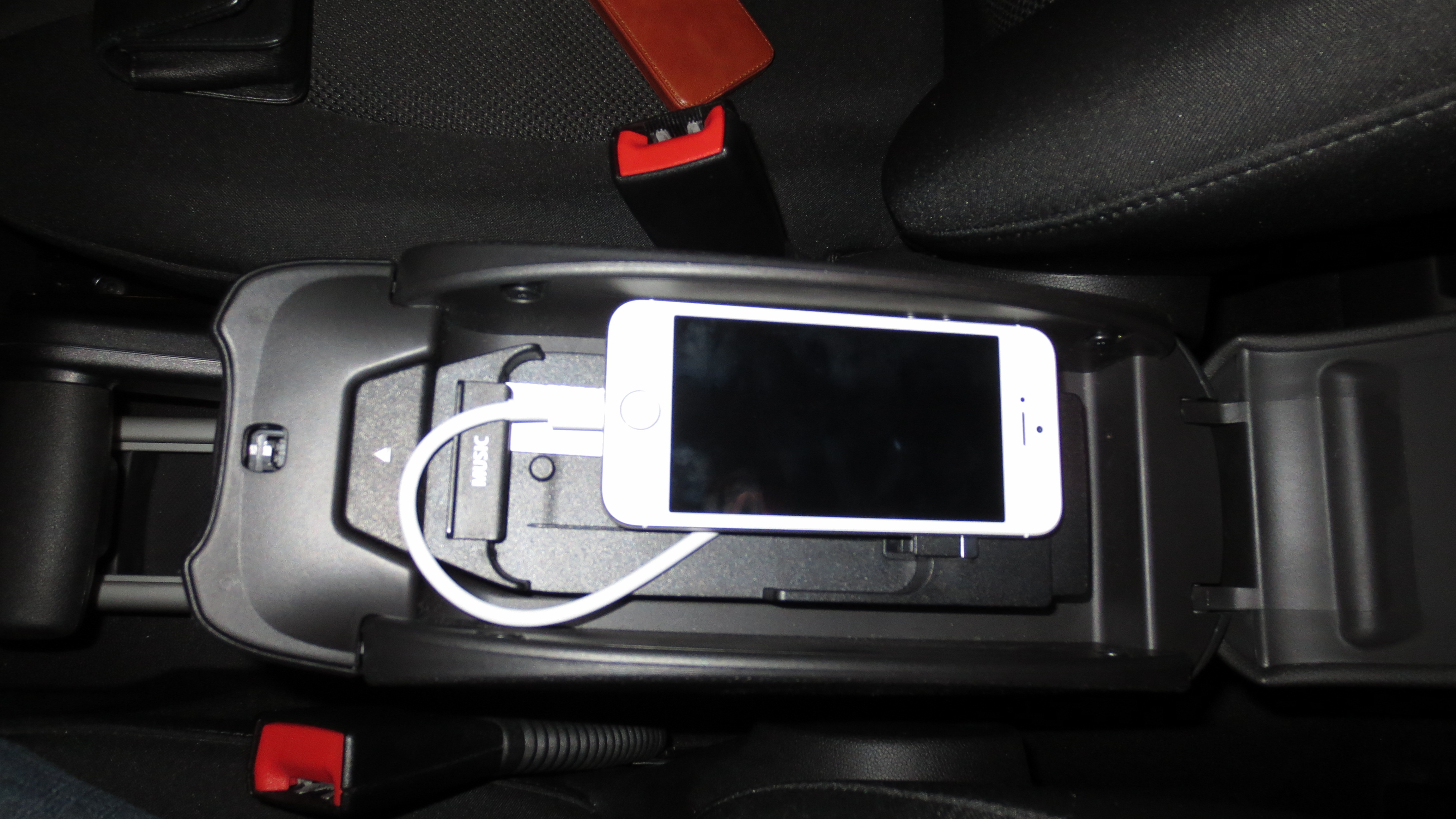 Damit das iPhone nicht hin und her rutscht kann man es sogar im Case/Tasche in die Armlehne legen.