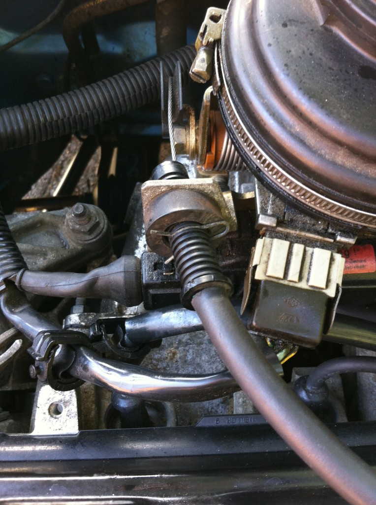 Bei der ersten TÜV Vorstellung bestand der Peugeot leider die AU nicht da sein Standgas zu hoch war , wie vermutet war es wieder der hängende Gaszug. Das Problem ist das die Gummitülle immer vom Schlauch abrutscht und sich dadurch der Gaszug verhakt ich habe nun auf den Schlauch eine Lage Isoband gewickelt und die Gummitülle fest auf den Schlauch geschoben dadurch hoffe ich bleibt alles fest zusammen so dass sich der Gaszug nicht mehr verhaken kann.