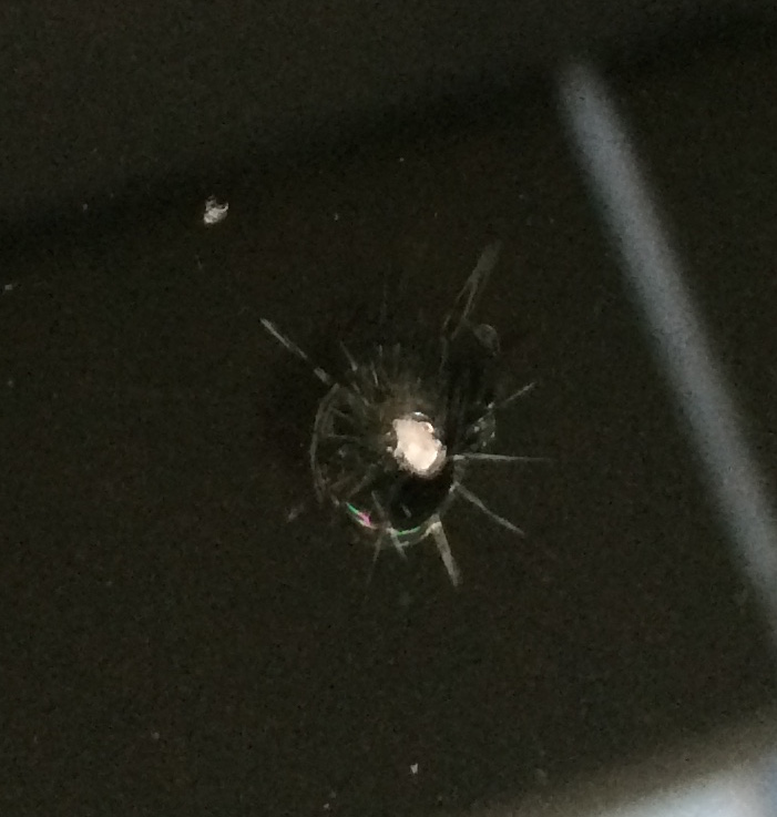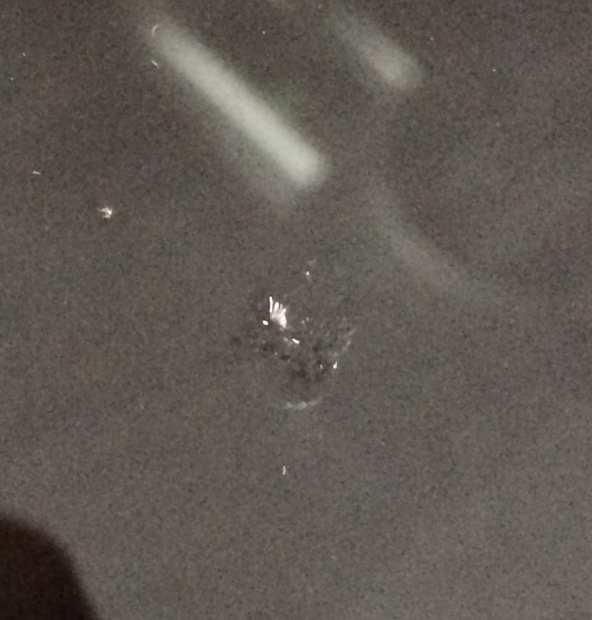 Bei näherer Betrachtung musste ich leider feststellen dass da schon ein ordentliches Loch in der Scheibe war 🙁 . Naja erstmal die Stelle mit einem Tesa vor Verunreinigungen schützen.